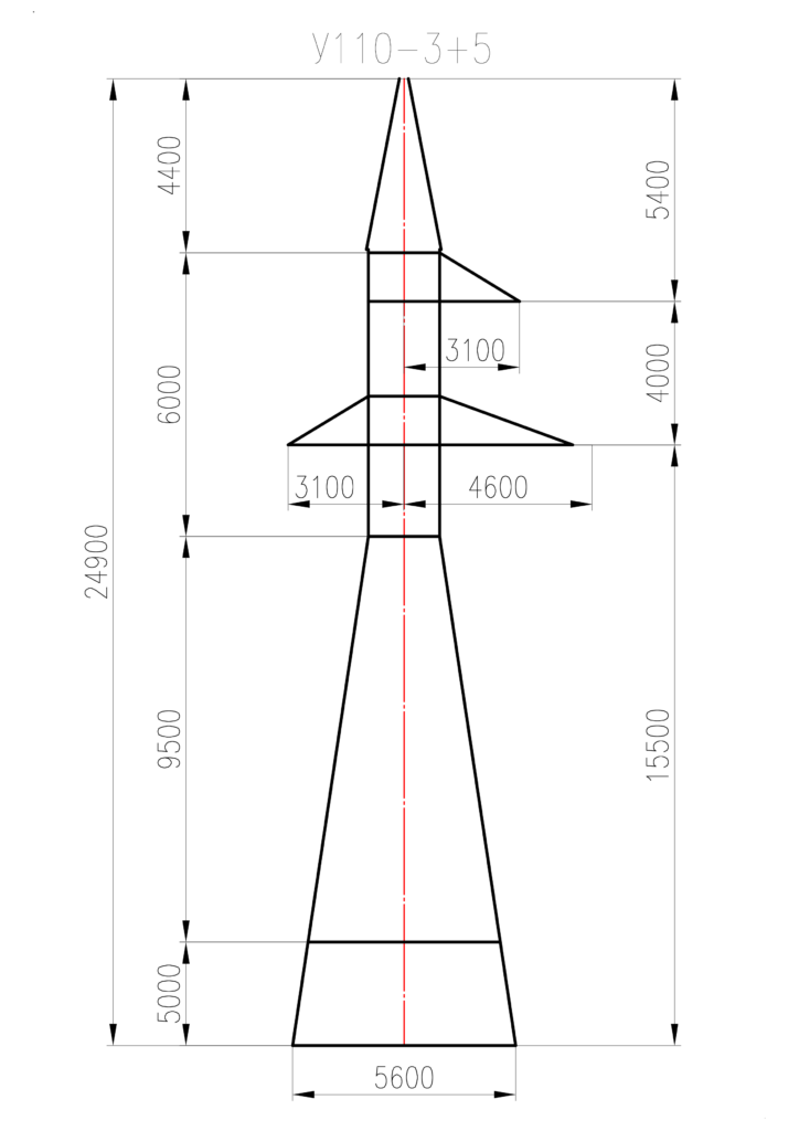 Стальная анкерно-угловая опора У110-3+5 изготавливается на основании чертежей КМ типовой серии 3.407-94.8