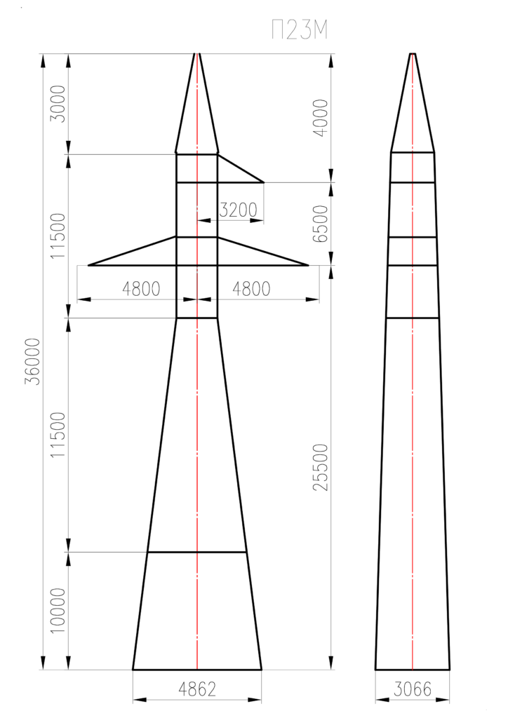 Стальная промежуточная опора П23М изготавливается на основании чертежей типового проекта 1052тм.