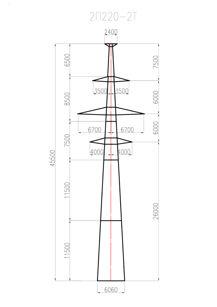 Стальная промежуточная опора 2П220-2Т изготавливается на основании чертежей типового проекта 3.407.2-145.