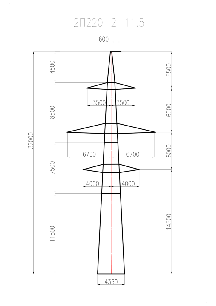 Стальная промежуточная опора 2П220-2-11,5 изготавливается на основании чертежей типового проекта 3.407.2-145.