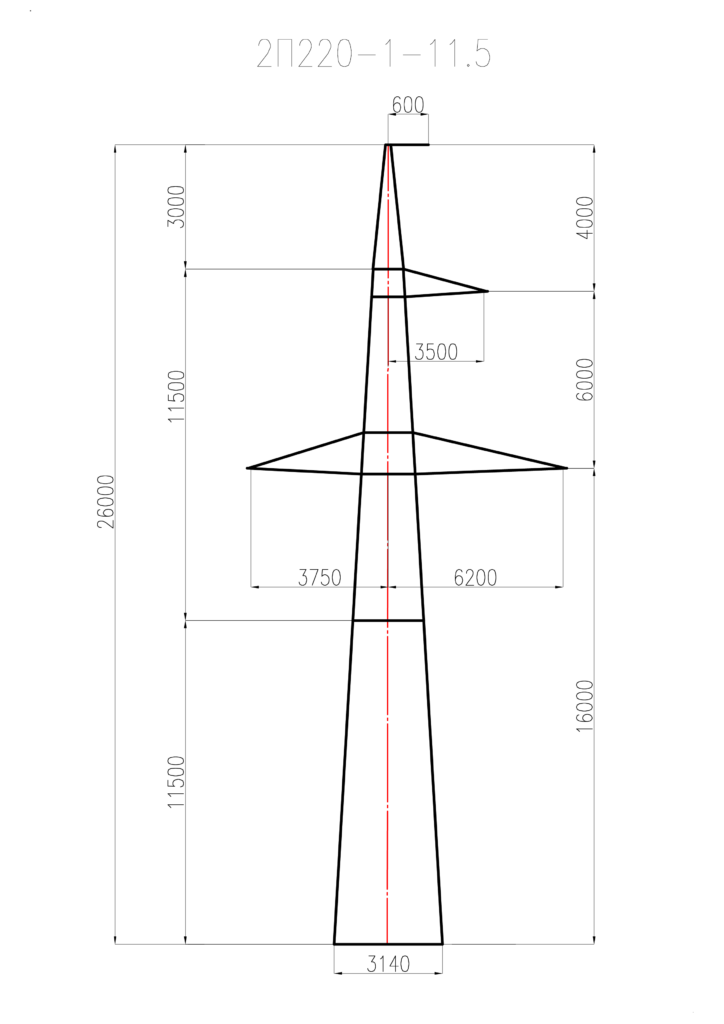 Стальная промежуточная опора 2П220-1-11,5 изготавливается на основании чертежей типового проекта 3.407.2-145.