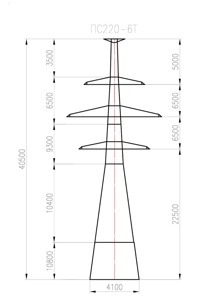 Стальная промежуточная опора ПС220-6Т изготавливается на основании чертежей КМ типовой серии 3.407-99.