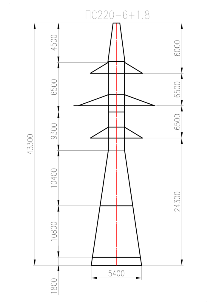 Стальная промежуточная опора ПС220-6+1,8 изготавливается на основании чертежей КМ типовой серии 3.407-99.