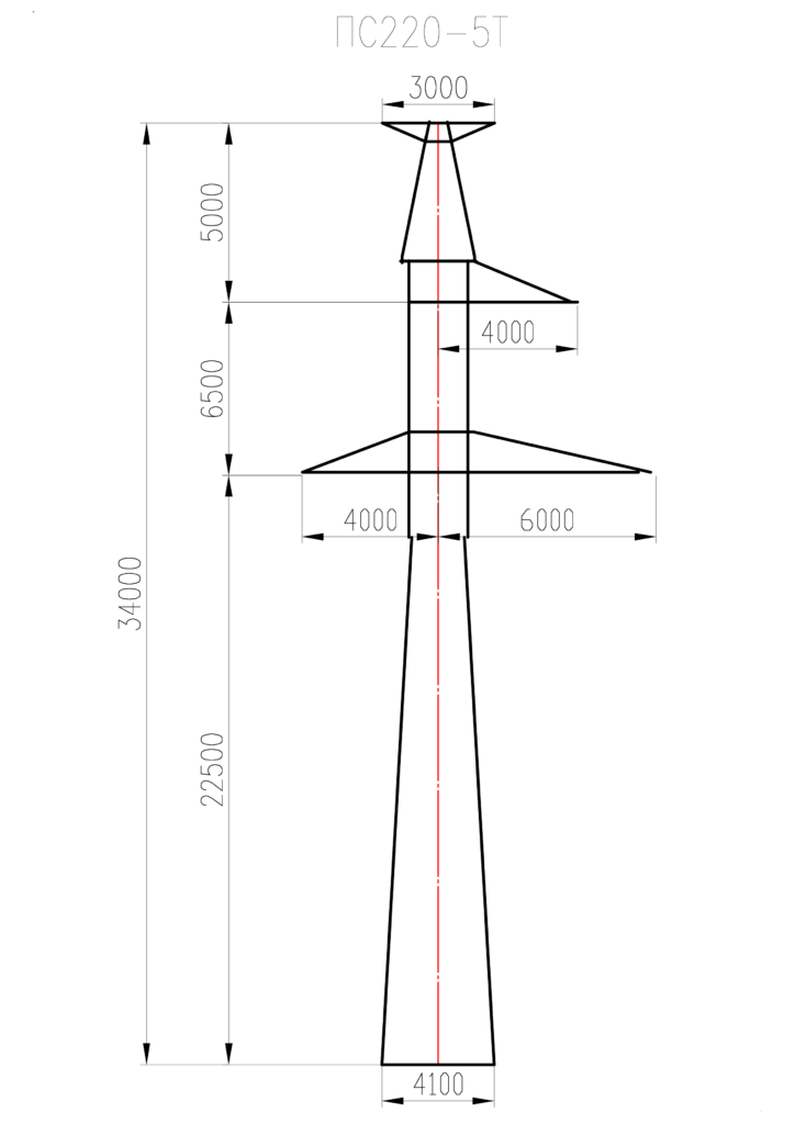 Стальная промежуточная опора ПС220-5Т для линий электропередач 220 кВ изготавливается на основании типовой серии 3.407-94 или 3.407-99.