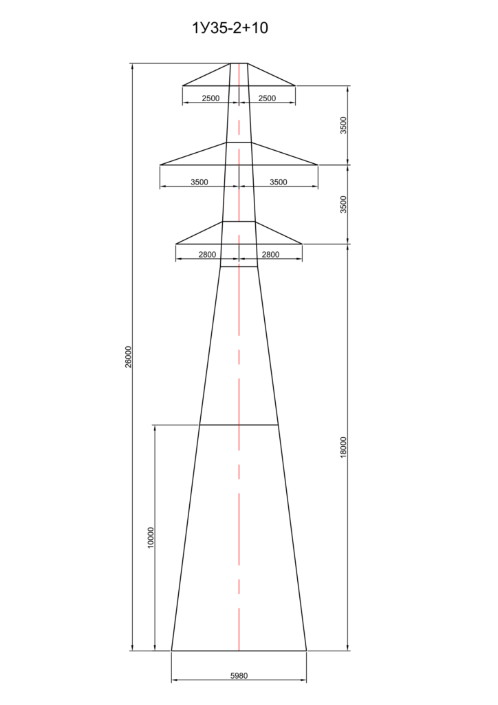 Стальная анкерно-угловая опора 1У35-2+10, изготавливается на основании чертежей КМ типовой серии 3.407.2-170 в.3