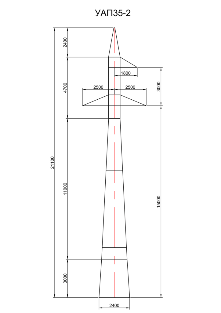 Стальная переходная опора УАП35-2 изготавливается на основании чертежей типового проекта 3.407.2-132