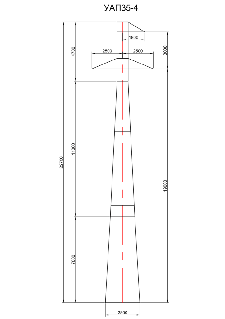 Стальная переходная опора УАП35-4 изготавливается на основании чертежей типового проекта 3.407.2-132