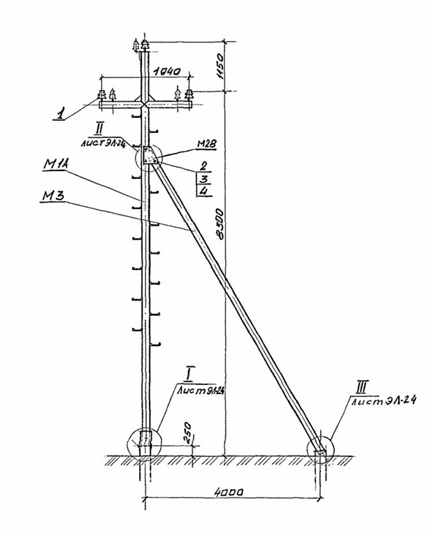 Опора УПт 10-1 изготавливается на основании чертежей типовой серии Арх. 4.0639 (Арх. № 4.0639-1).