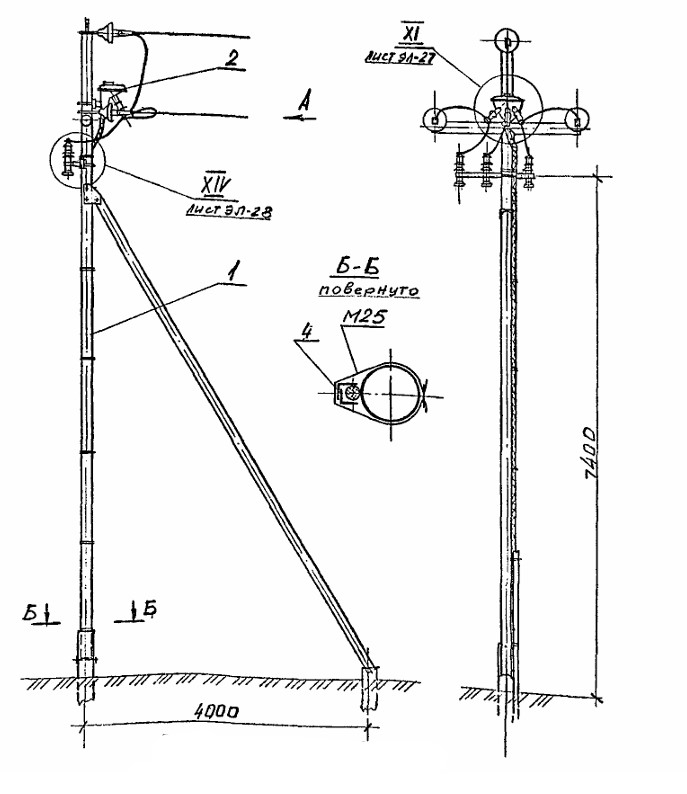 Стальная концевая опора Кт 10-1-Мв изготавливается на основании чертежей типовой серии Арх. 4.0639 (Арх. № 4.0639-1).
