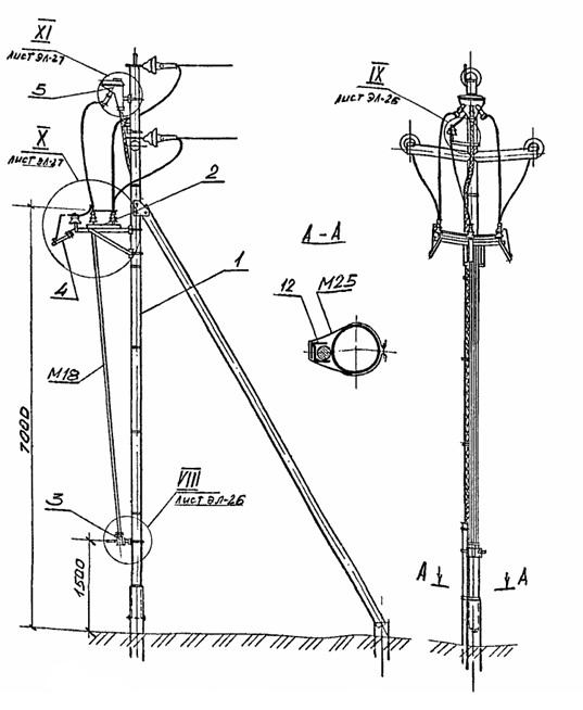Стальная концевая опора Кт 10-1-РМт изготавливается на основании чертежей типовой серии Арх. 4.0639 (Арх. № 4.0639-1).