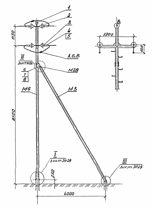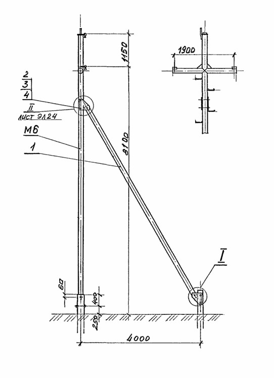 Стальная концевая опора Кт 10-1 изготавливается на основании чертежей типовой серии Арх. 4.0639 (Арх. № 4.0639-1).