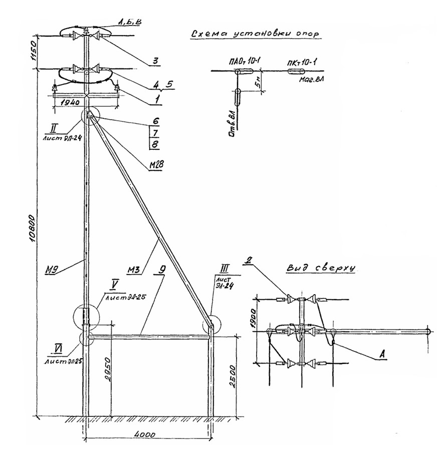 Стальная переходная опора ПАОт 10-1 изготавливается на основании чертежей типовой серии Арх. 4.0639 (Арх. № 4.0639-1).